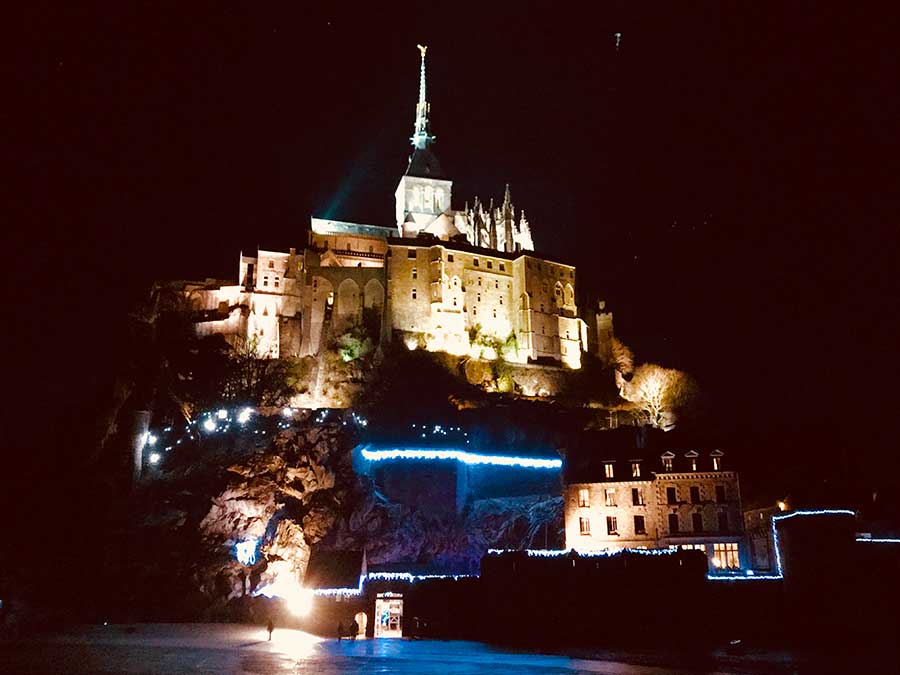 昼、此処に辿り着いた時に仰ぎ見たモンサンミッシェルの威容と、宵闇にライトアップされた聖ミカエルの姿、そして静かに明ける蒼い朝。