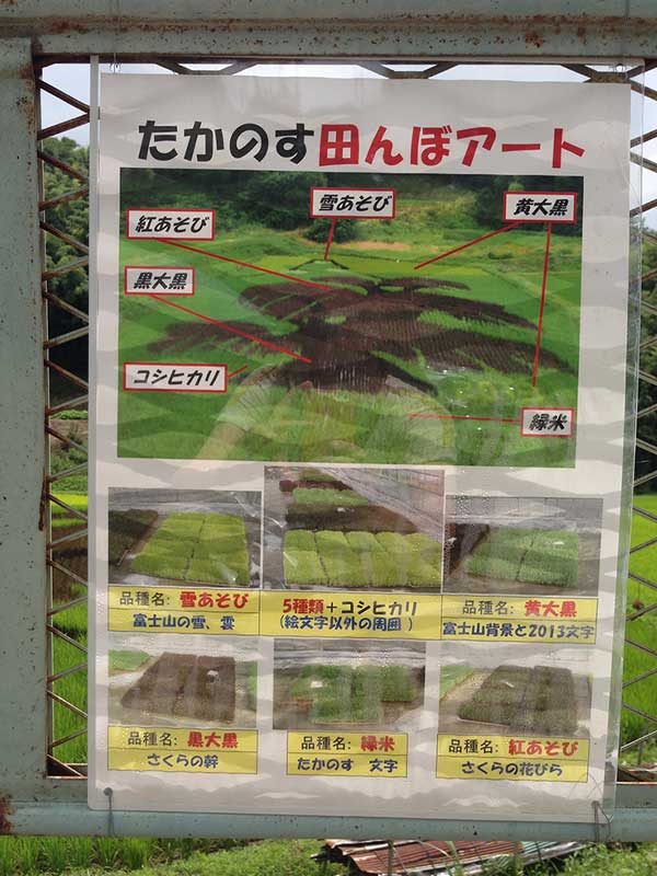 途中、にぎやかなのぼりが見えたので車を停めると、「田んぼアート」がありました。